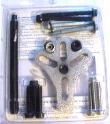 | Um das Lenkrad abzuziehen, braucht man in der Regel einen Lenkradabzieher. Obwohl es spezielle Abzieher für's Lenkrad gibt, habe ich mir diesen kombinierten Lenkrad/Schwingungsdämpfer-Abzieher von Sears #47626 geholt. Sears gibt's drüben in jeder besseren "Mall". Leider passte keine der beiliegenden Schrauben für den Fiero, aber das war kein Problem... | ![]() | |
